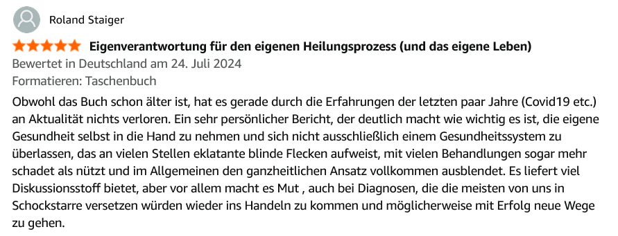 „Ohne, dass dies meine Absicht gewesen war, erweist sich durch meinen Weg und meine Erfahrung einiges als fragwürdig, was in der Medizin bis heute angenommen wird.“